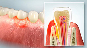 Die Entzündung hat sich vom Zahn auf das umgebende Gewebe (Zahnfleisch und Knochen) ausgebreitet.